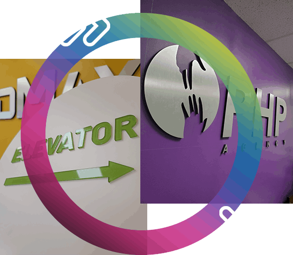 Acrylic signs use a polymer that’s colorless, transparent and totally customizable. Although it is typically made with UV ink printed right onto the material, it can also be used with vinyl lettering or print films, like opaque and clear window decals.