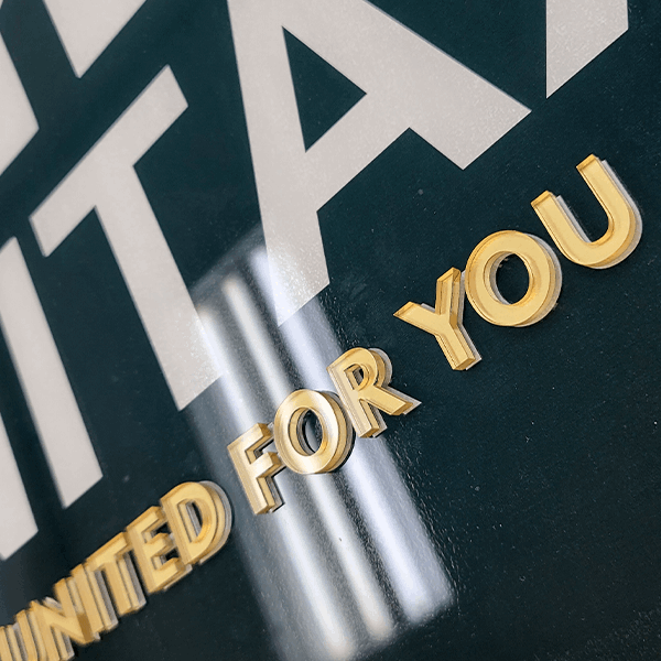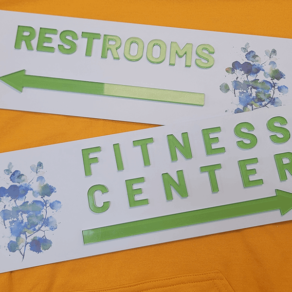Acrylic signs use a polymer that’s colorless, transparent and totally customizable. Although it is typically made with UV ink printed right onto the material, it can also be used with vinyl lettering or print films, like opaque and clear window decals.